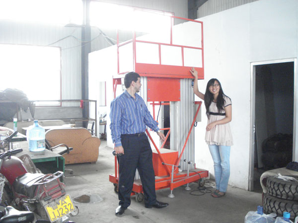 印度客戶來我公司選購鋁合金升降機http://mzkx.cn/