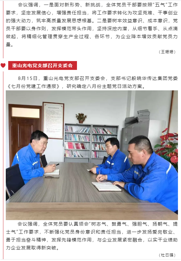 【黨建】集團(tuán)機(jī)關(guān)黨支部、魯中水泥黨支部、重山光電黨支部分別召開支委會(huì)