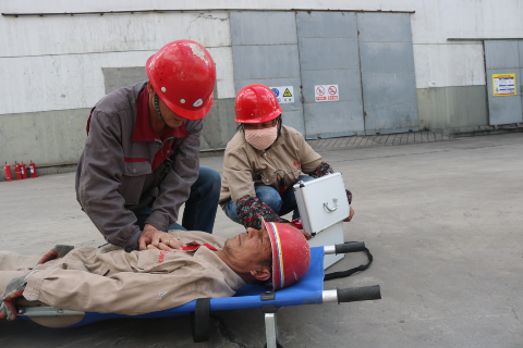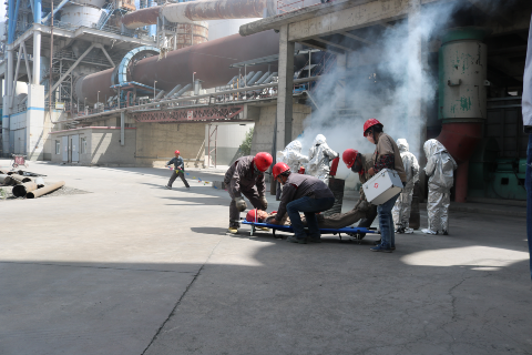 此次演練由生產(chǎn)部主任王克峰擔(dān)任救援總指揮,并設(shè)立安全警戒、水電控制、消防滅火、疏散搶救、醫(yī)療救護(hù)、后勤保障共6個救援小組,并設(shè)專人任組長。上午9:30分,全體演練人員在燒成車間窯中空場進(jìn)行集合。王克峰總指揮首先進(jìn)行了演練動員,宣布了本次演練的組織機(jī)構(gòu)人員名單、職責(zé)及演練要求。隨著王克峰宣布演練正式開始,各組人員嚴(yán)格按照救援方案展開演練。安全警戒組和水電控制組立即設(shè)立警戒帶和切斷災(zāi)情區(qū)域及相關(guān)設(shè)施電源,消防滅火組迅速用滅火器對火災(zāi)現(xiàn)場進(jìn)行緊急滅火,疏散搶救組將災(zāi)區(qū)人員的重要物資進(jìn)行轉(zhuǎn)移并將傷員救出,隨后醫(yī)療救護(hù)小組在現(xiàn)場對傷員進(jìn)行了緊急救治,后勤保障組提供各項(xiàng)服務(wù)支持。各救援小組分工明確,反應(yīng)迅速,配合緊密,僅用了5分鐘便成功撲滅火災(zāi)將人員救出,在大家共同努力下此次演練圓滿成功。