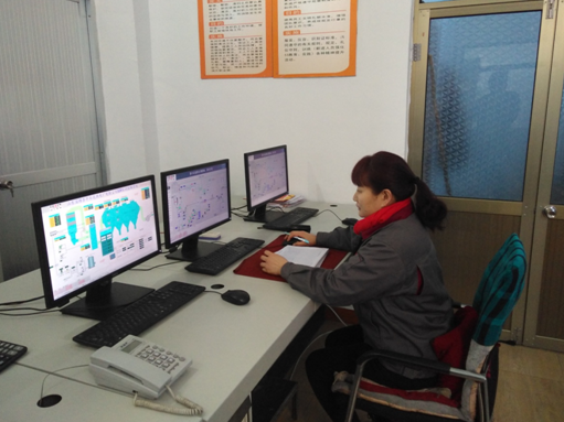 在線監(jiān)測崗位員工張愛芬正在記錄排放數(shù)據(jù)