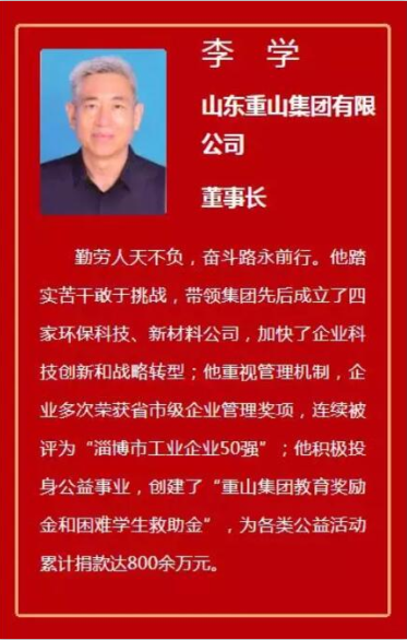 在改革開放40周年之際,為貫徹落實(shí)中共中央、國務(wù)院《關(guān)于營造企業(yè)家健康成長(zhǎng)環(huán)境弘揚(yáng)優(yōu)秀企業(yè)家精神更好發(fā)揮企業(yè)家作用的意見》,淄博市企業(yè)聯(lián)合會(huì)、市企業(yè)家協(xié)會(huì)組織開展淄博市優(yōu)秀企業(yè)家評(píng)選活動(dòng),按照“創(chuàng)新力、影響力、貢獻(xiàn)力”原則,綜合考量企業(yè)家在區(qū)域發(fā)展、行業(yè)領(lǐng)軍、社會(huì)責(zé)任等方面的貢獻(xiàn),經(jīng)過材料審核、專家實(shí)地考察、專家組討論打分、評(píng)審等嚴(yán)格的程序之后,于近日公布了名單。重山集團(tuán)董事長(zhǎng)李學(xué)榜上有名,彰顯了重山集團(tuán)在經(jīng)濟(jì)社會(huì)發(fā)展中的風(fēng)采,體現(xiàn)了李學(xué)董事長(zhǎng)誠信、務(wù)實(shí)、創(chuàng)新的優(yōu)秀企業(yè)家精神。