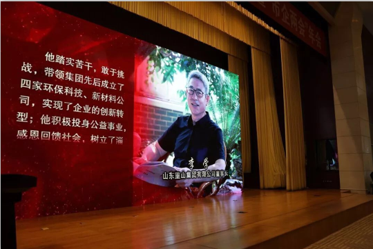 重山集團(tuán)董事長(zhǎng)李學(xué)榮獲“淄博市優(yōu)秀企業(yè)家”,并上臺(tái)領(lǐng)獎(jiǎng)。