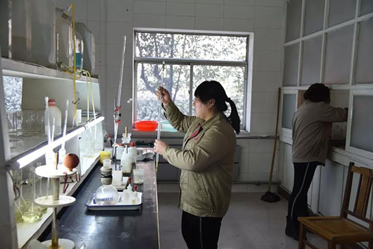 化驗(yàn)室分析工對(duì)樣品進(jìn)行認(rèn)真檢測(cè)