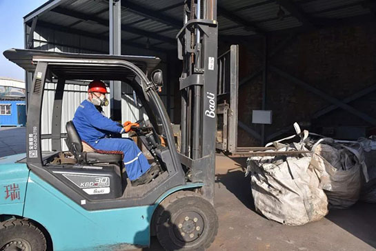 忙碌于廢棄物周轉(zhuǎn)的叉車司機(jī)