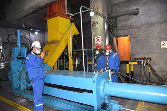 預(yù)處理車間工人們正在調(diào)整設(shè)備