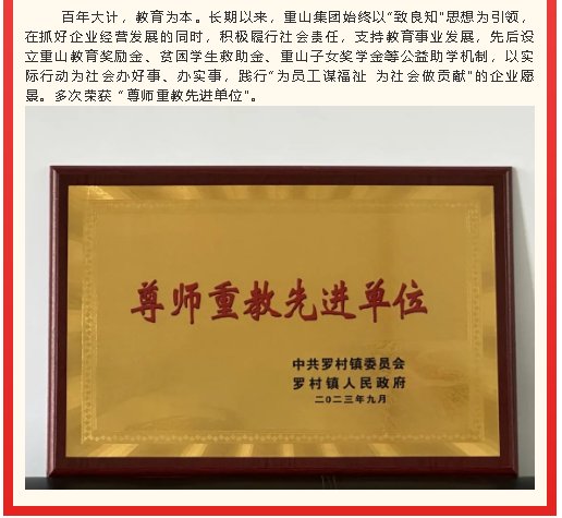 重山集團(tuán)榮獲“尊師重教先進(jìn)單位”
