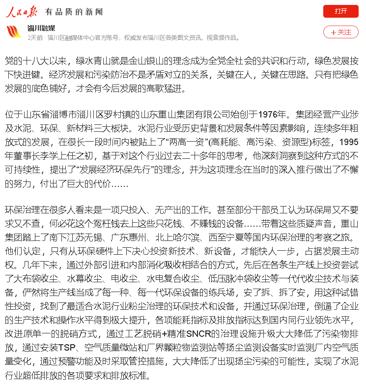 山東重山集團:企業(yè)發(fā)展經(jīng)濟 環(huán)保先行