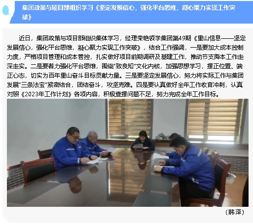 【重山動態(tài)】集團(tuán)運營中心、政策與項目部組織學(xué)習(xí)《堅定發(fā)展信心,強(qiáng)化平臺思維,凝心聚力實現(xiàn)工作突破》