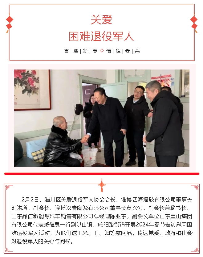 重山集團參加淄川區(qū)關愛退役軍人協(xié)會春節(jié)走訪慰問困難退役軍人活動