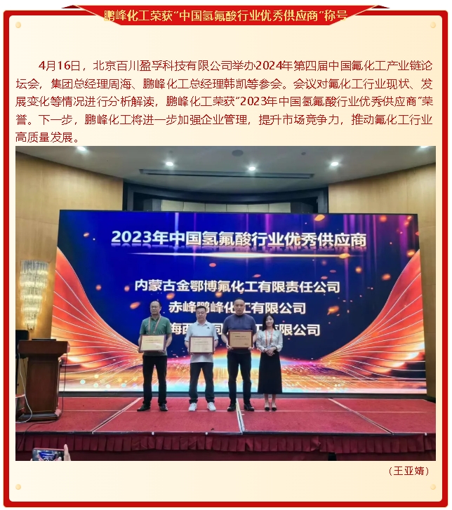 【榮譽(yù)】鵬峰化工榮獲“中國(guó)氫氟酸行業(yè)優(yōu)秀供應(yīng)商”稱號(hào)、黃驊三陽(yáng)榮獲河北硅酸鹽學(xué)會(huì)“優(yōu)秀會(huì)員單位”稱號(hào)
