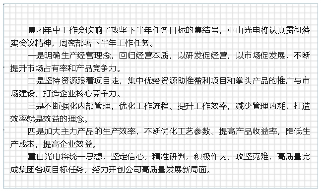 【貫徹落實(shí)年中會議精神】下半年怎么干——重山光電