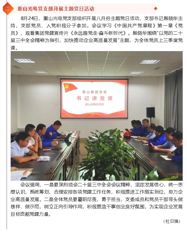 【黨建】集團(tuán)機(jī)關(guān)黨支部、重山光電黨支部開展主題黨日活動(dòng)