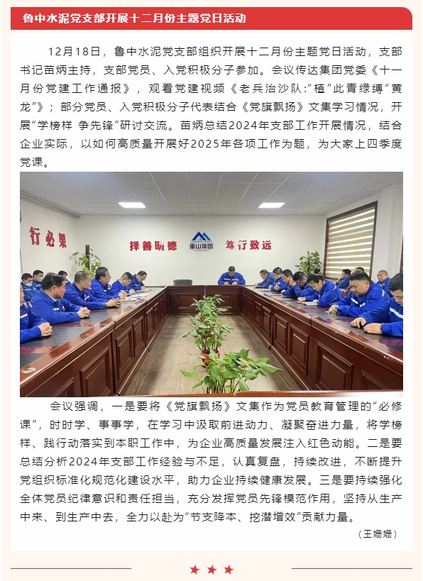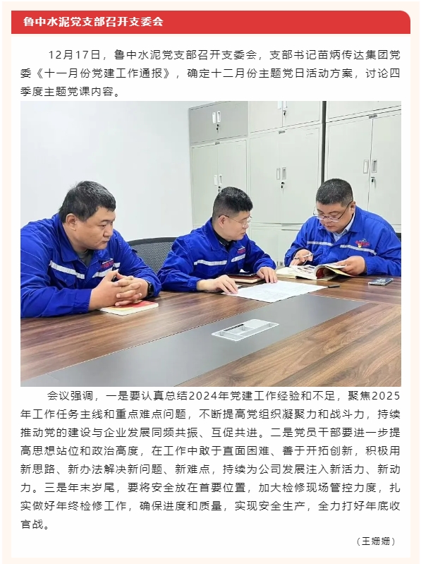 【黨建】魯中水泥黨支部召開(kāi)支委會(huì)、開(kāi)展主題黨日活動(dòng)
