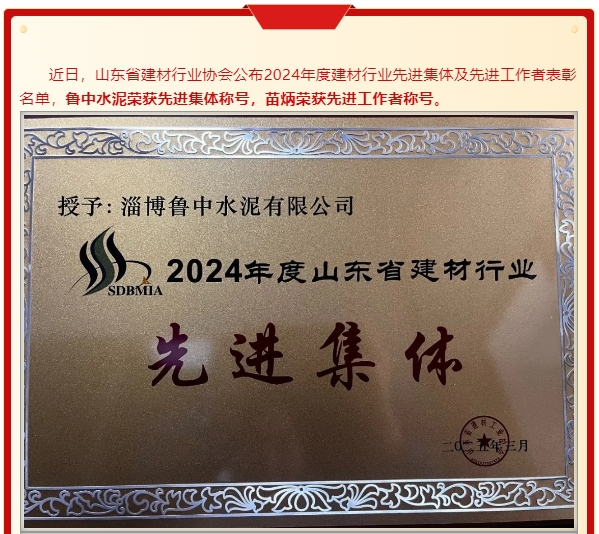 【榮譽(yù)】魯中水泥榮獲2024年度省建材行業(yè)先進(jìn)集體、先進(jìn)工作者