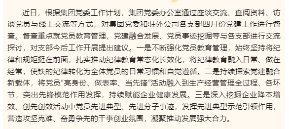 【黨建】集團(tuán)黨委開(kāi)展四月份黨建工作督查