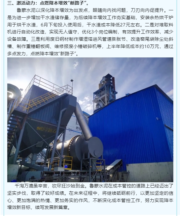 用好精益管理“金鑰匙” 按下降本增效“快進(jìn)鍵”——魯蒙水泥降本增效再發(fā)力