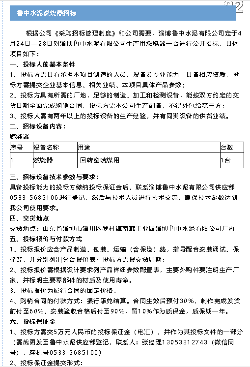 【招標(biāo)公告】魯中水泥