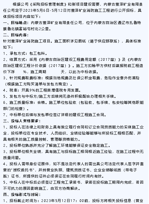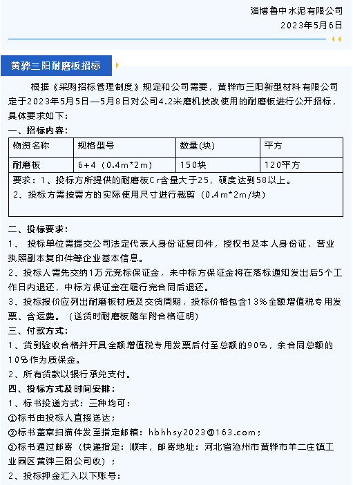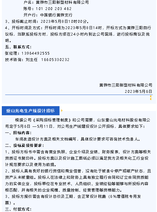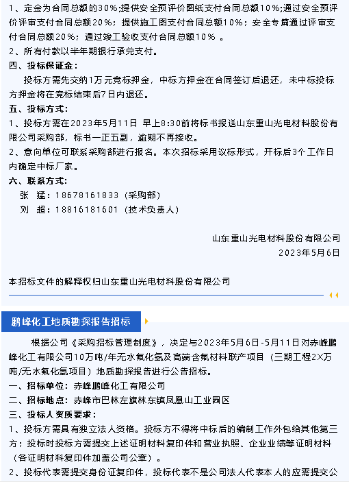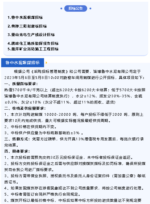 【招標(biāo)公告】魯中水泥、黃驊三陽(yáng)、重山光電、鵬峰化工、螢澤礦業(yè)