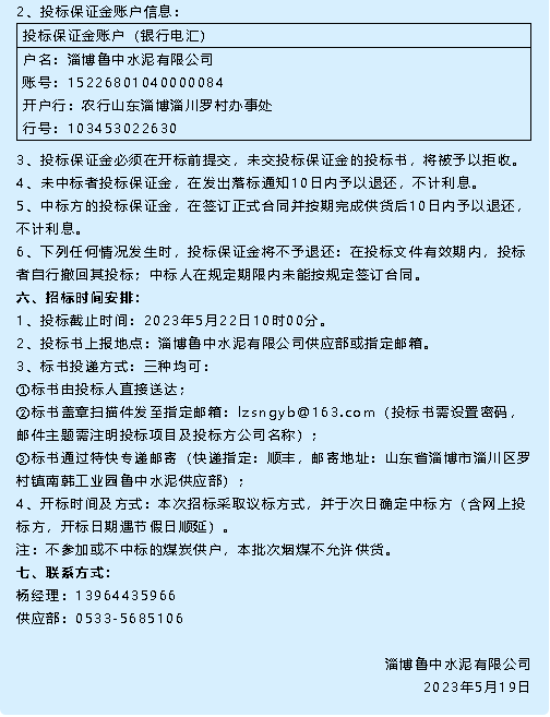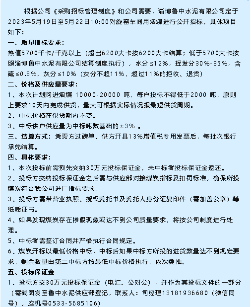 【招標公告】魯中水泥