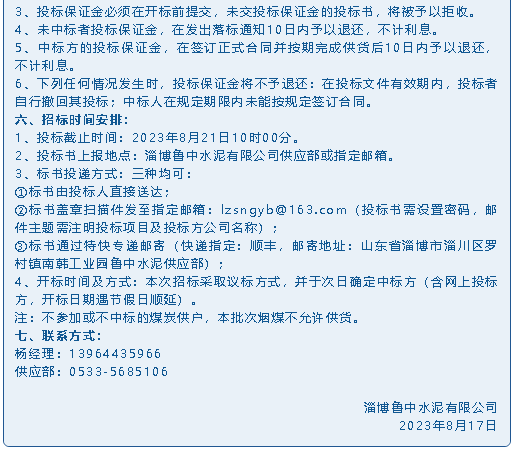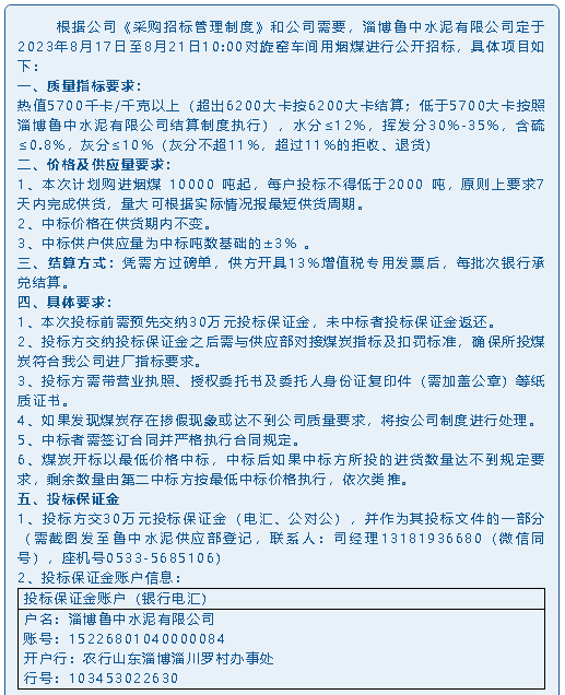【招標公告】魯中水泥