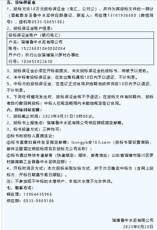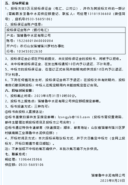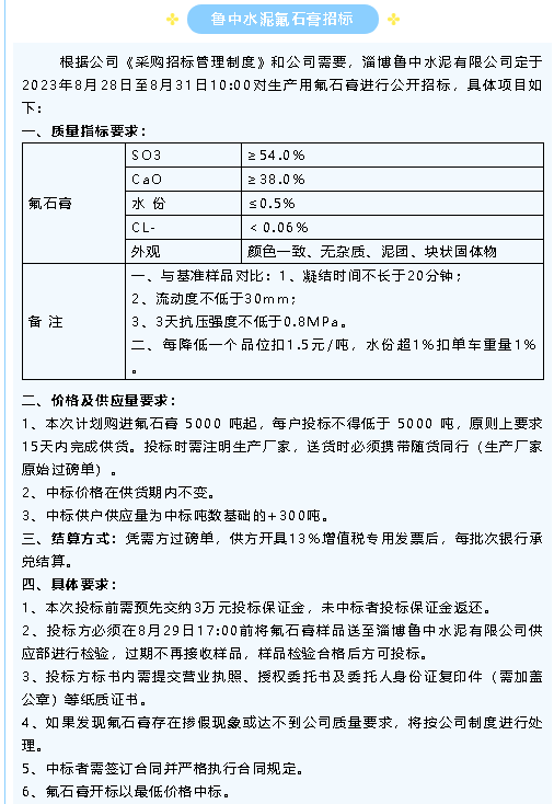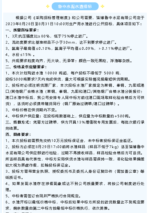 【招標(biāo)公告】魯中水泥氟石膏、水渣招標(biāo)