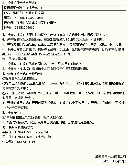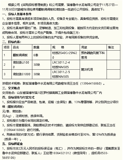 【招標(biāo)公告】魯中水泥