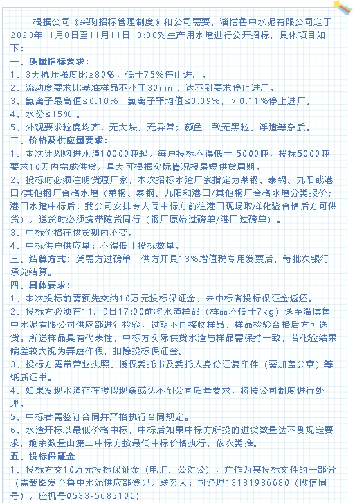 【招標公告】魯中水泥