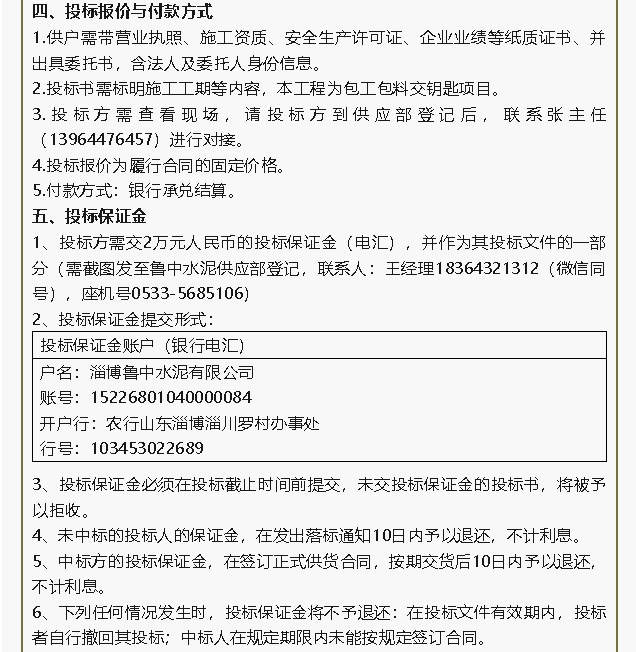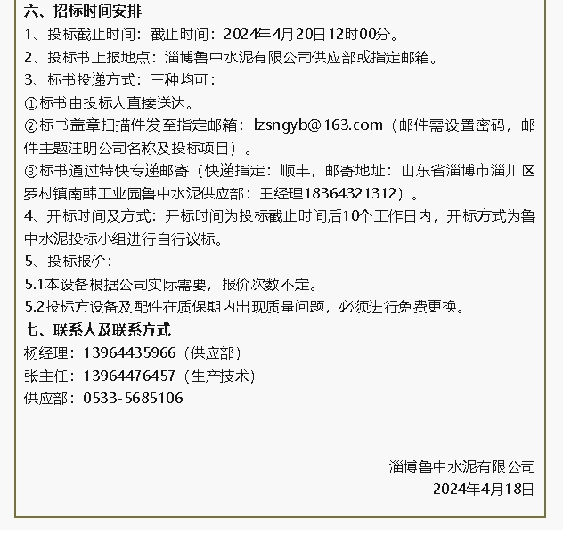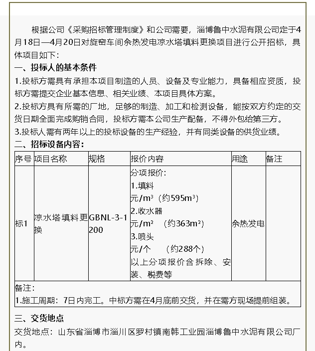 【招標(biāo)公告】魯中水泥