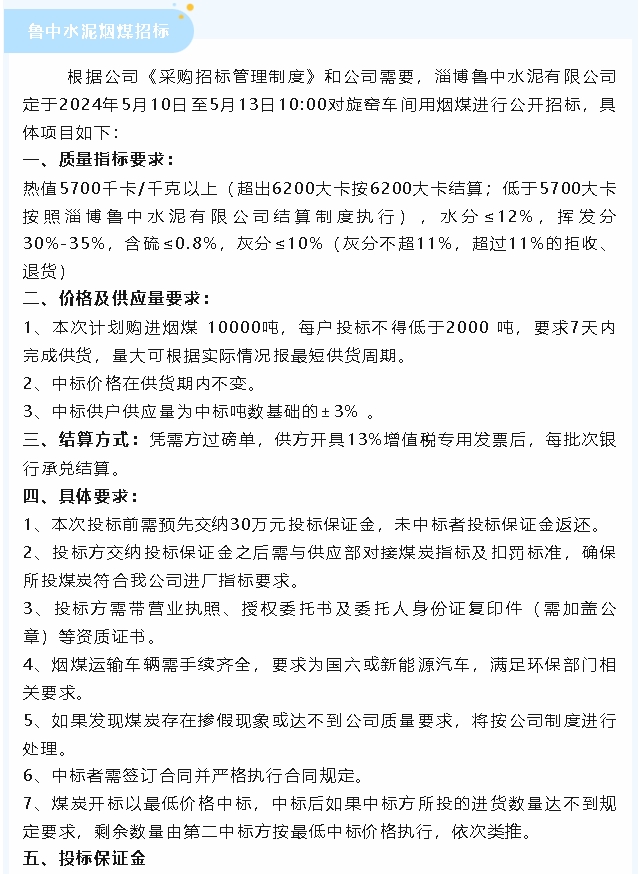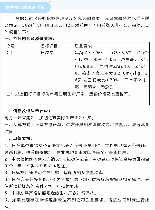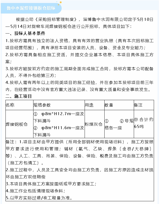【招標公告】魯蒙水泥粉煤灰、魯中水泥煙煤及焊接鋼板倉招標