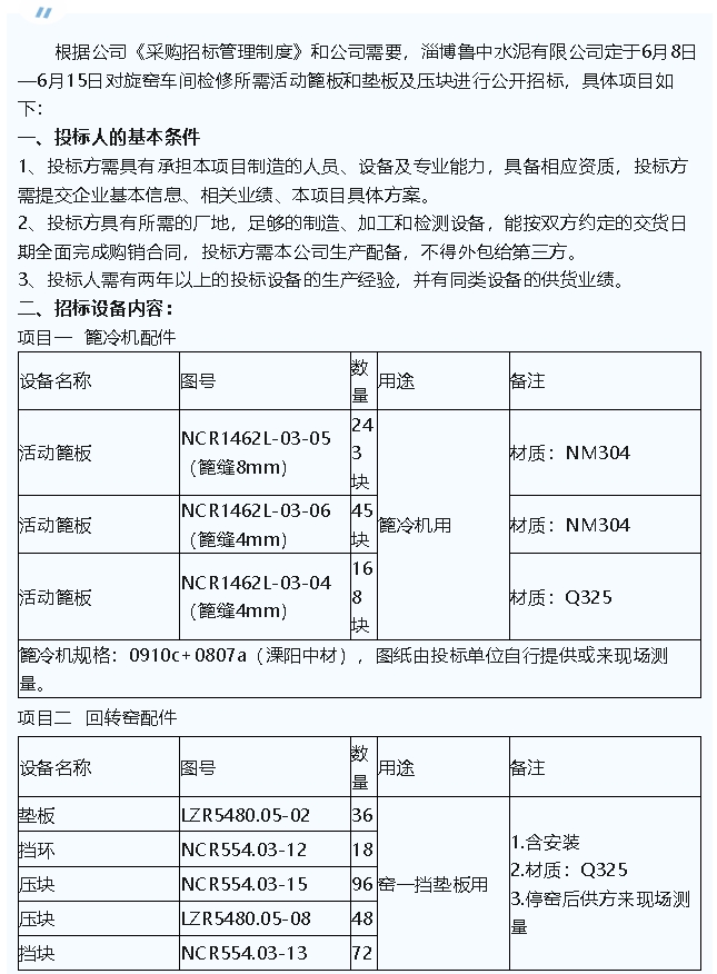 【招標(biāo)公告】魯中水泥