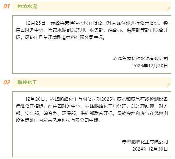 【中標公告】魯蒙水泥、鵬峰化工