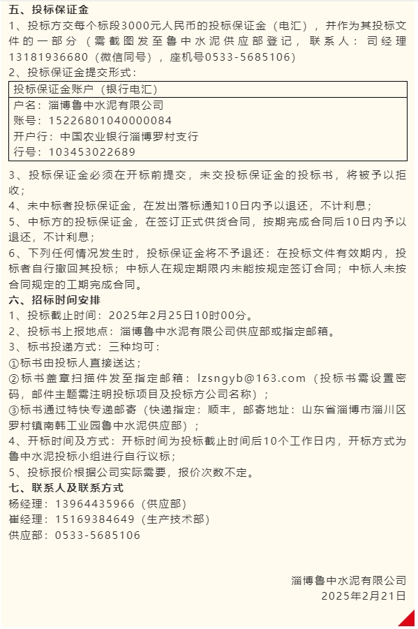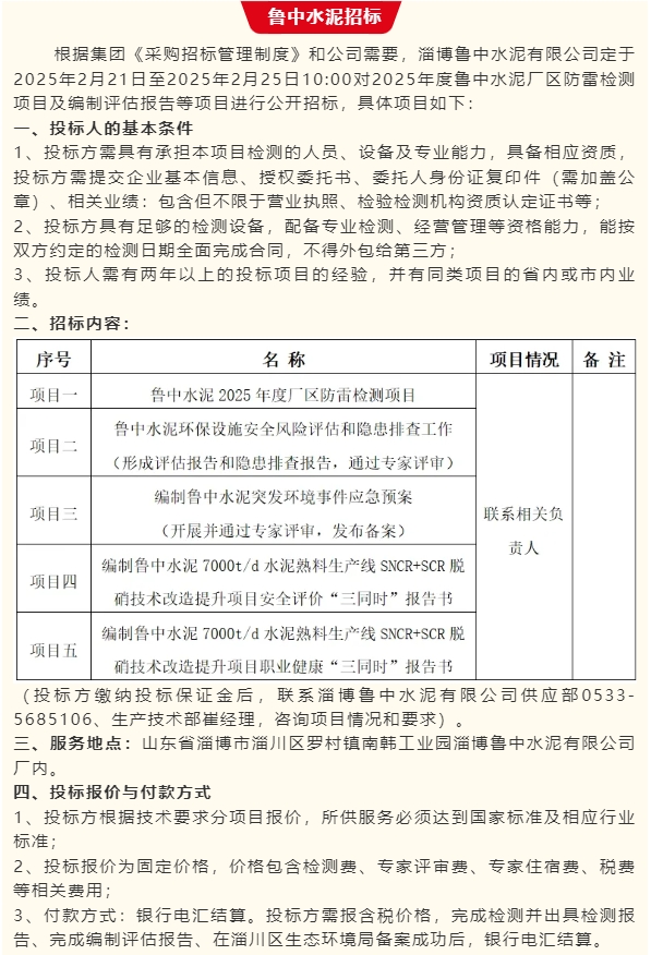 【招標(biāo)公告】魯中水泥、魯蒙水泥