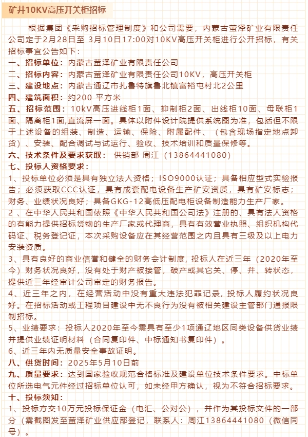 【招標公告】重山思沃瑞、螢澤礦業(yè)
