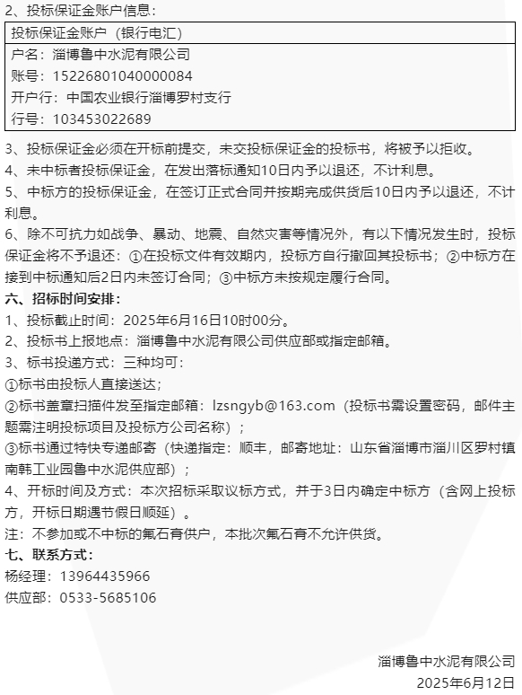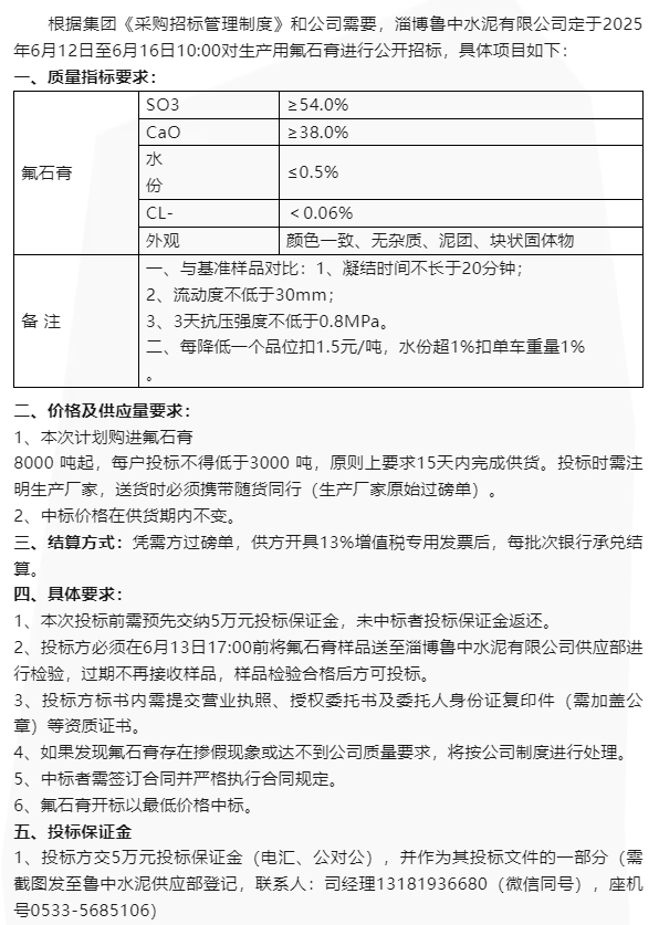 【招標公告】魯中水泥