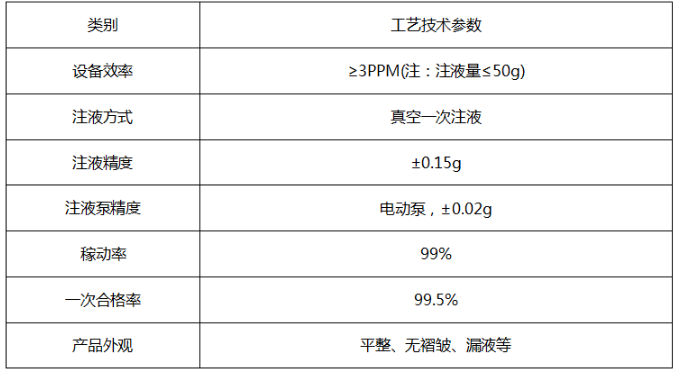 半自動(dòng)注液機(jī)用于鋰氟化碳電池的真空注液,主要包含掃碼稱重、自動(dòng)注液功能,不帶真空靜置和真空封裝功能。本設(shè)備以工控機(jī)為核心采集生產(chǎn)運(yùn)行數(shù)據(jù)并上傳至MES系統(tǒng)(預(yù)留MES系統(tǒng)對(duì)接端口), 將電池注液、靜置時(shí)間等信息與鋁塑膜掃碼一一對(duì)應(yīng),并將對(duì)應(yīng)信息存儲(chǔ)至工業(yè)PC或上傳至MES系統(tǒng)。