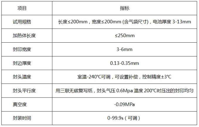 真空預(yù)封機(jī)用于注液靜置后的軟包鋰氟化碳電池真空抽氣、熱壓封口,其工作流程是電池放入后,抽-90KPa的負(fù)壓,使電芯內(nèi)的空氣排除;然后對(duì)軟包電池進(jìn)行封裝的功能。