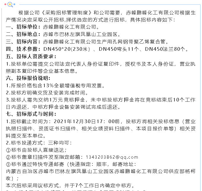 上一篇:【招標公告】鵬峰化工