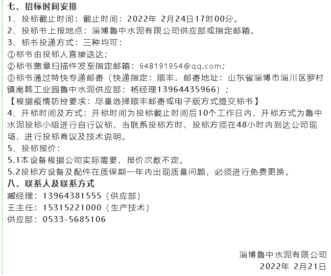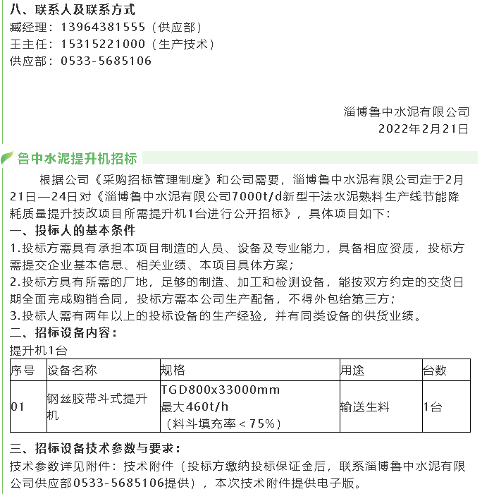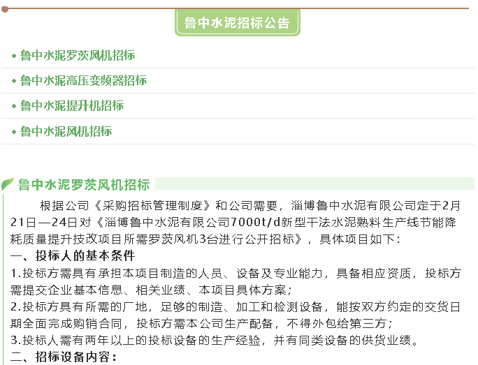 【招標(biāo)公告】魯中水泥羅茨風(fēng)機(jī)、高壓變頻器、提升機(jī)、風(fēng)機(jī)招標(biāo)