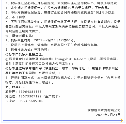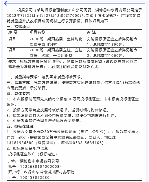 【招標(biāo)公告】魯中水泥