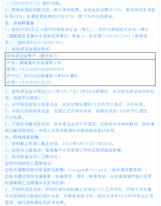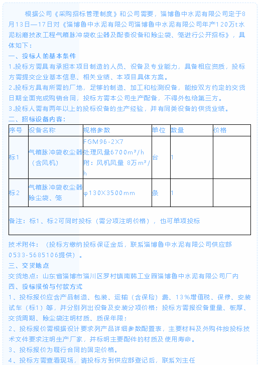 【招標公告】魯中水泥