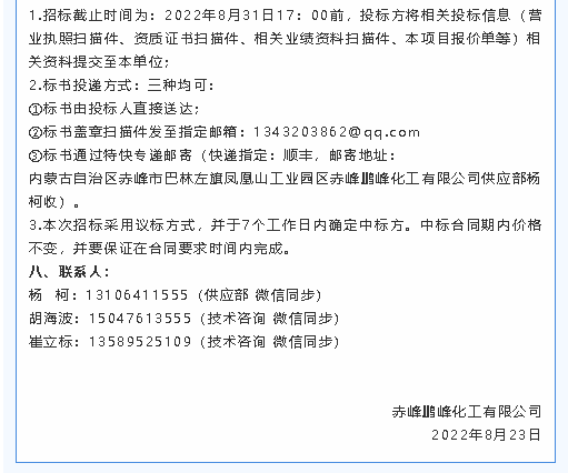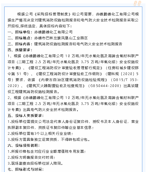 【招標公告】鵬峰化工