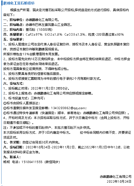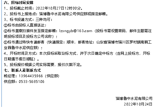 【招標公告】魯中水泥、鵬峰化工