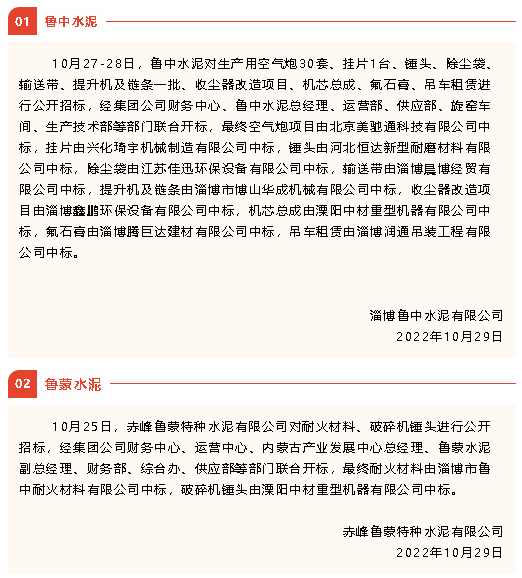 【中標(biāo)公告】魯中水泥、魯蒙水泥、鵬峰化工