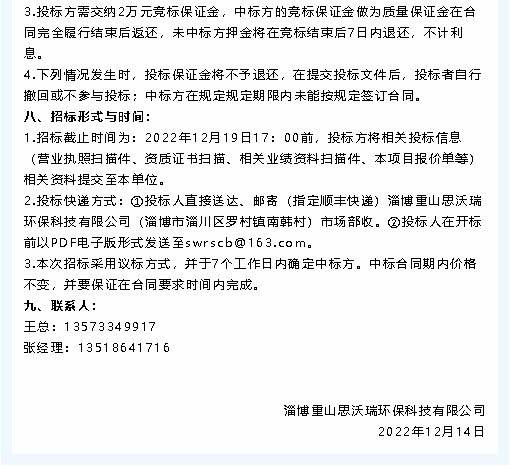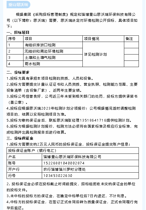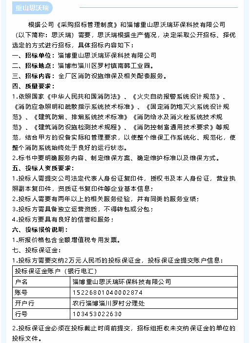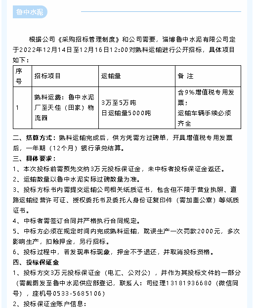 【招標(biāo)公告】魯中水泥、重山思沃瑞