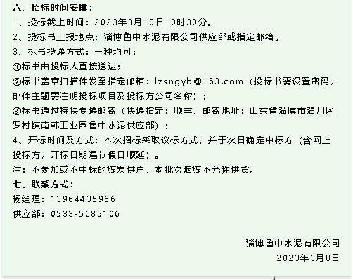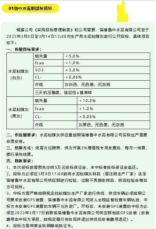 【招標(biāo)公告】魯中水泥粉煤灰、煙煤招標(biāo)