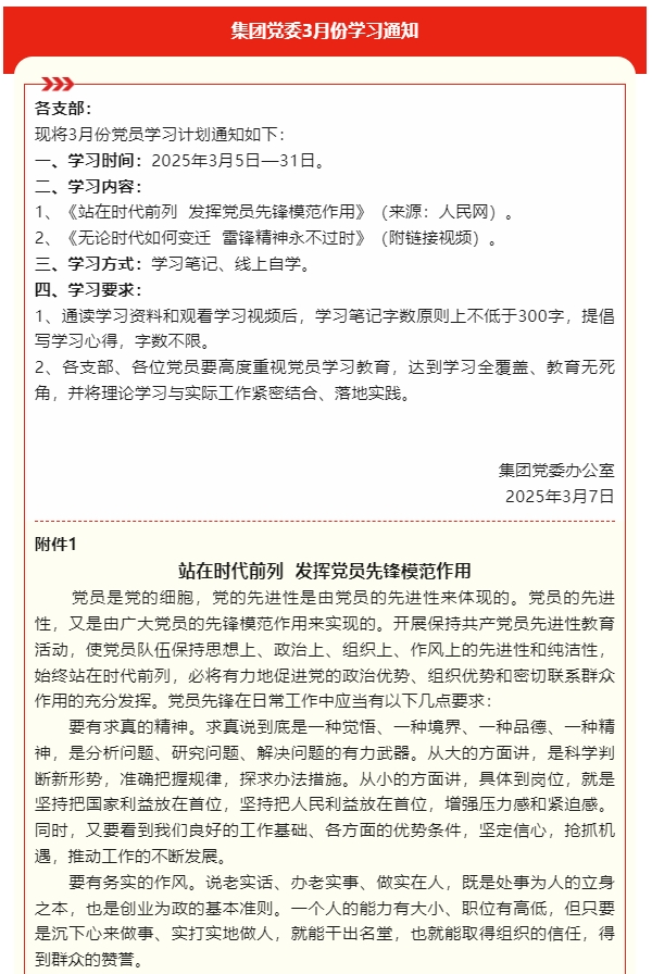 【通知】集團黨委3月份學習通知