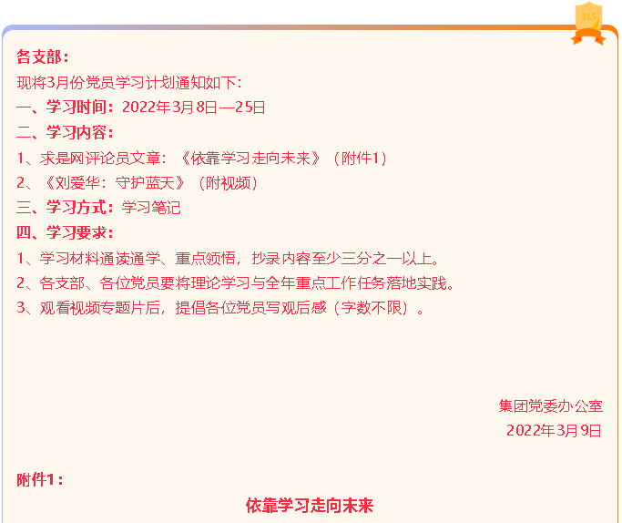 【通知】?集團黨委3月份學(xué)習(xí)通知
