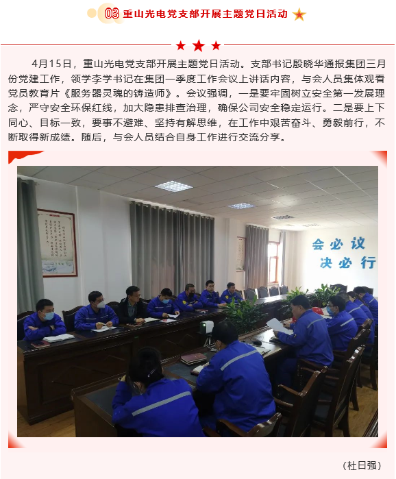【黨建】區(qū)委組織部黨建工作示范點(diǎn)觀摩點(diǎn)評;魯中水泥黨支部、重山光電黨支部開展主題黨日活動