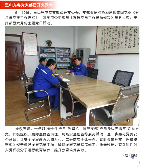 【黨建】重山光電黨支部、黃驊三陽黨支部召開支委會