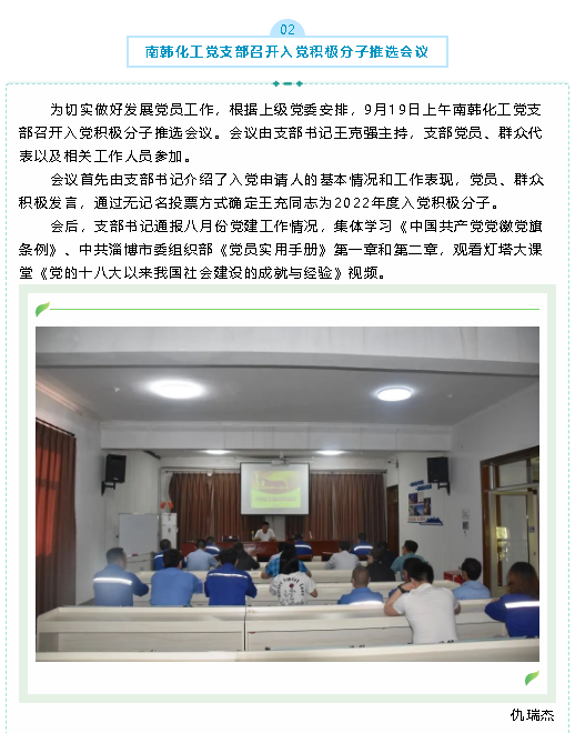 【黨建】魯中水泥黨支部召開(kāi)主題黨日活動(dòng)、南韓化工黨支部召開(kāi)入黨積極分子推選會(huì)議
